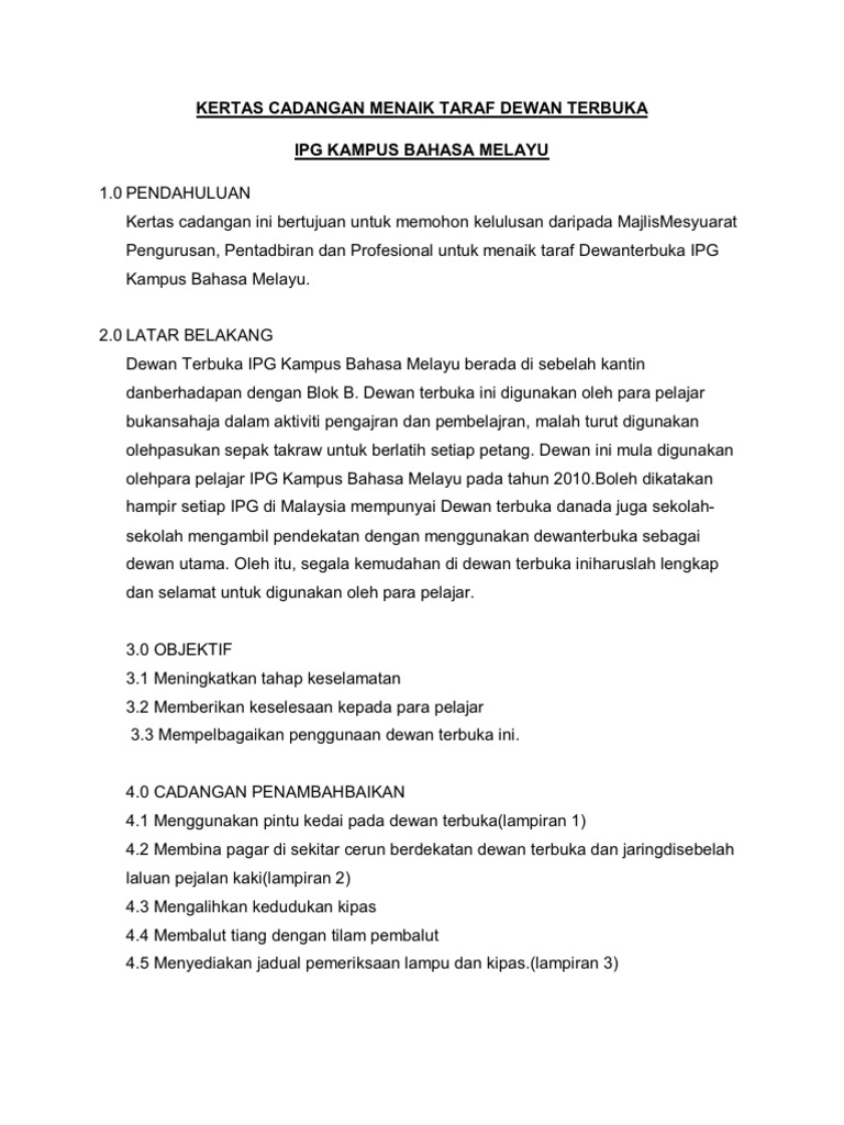 Kertas Cadangan Menaik Taraf Dewan Terbuka Pdf