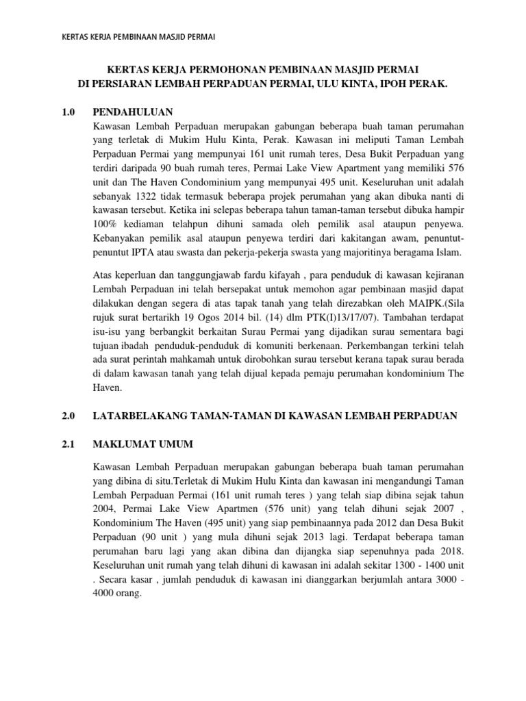 Kertas Kerja Permohonan Pembinaan Masjid Permai Pdf